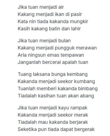 Melalui alur yang runtut dan puitis, syair berhasil menyatukan keindahan bunyi, struktur, dan makna menjadi satu karya sastra yang abadi.