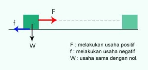 Usaha positif bisa terjadi kalau arah gaya sejalan dengan perpindahan benda. Dengan kata lain, gaya yang kamu berikan membantu benda untuk bergerak ke arah yang sama.